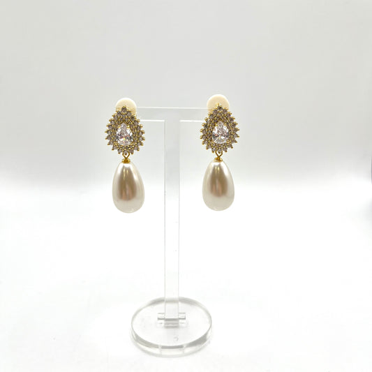 Σκουλαρίκια κλιπ με πέρλα και ζιρκόν 10μμ