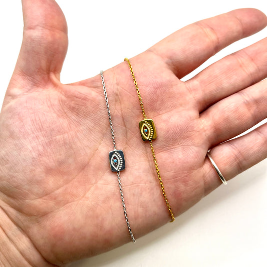 Βραχιόλι με ματάκι από σμάλτο και μπαλίτσες