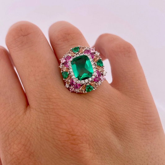 Δαχτυλίδι με μαργαριτάρι και χρωματιστά ζιρκόν